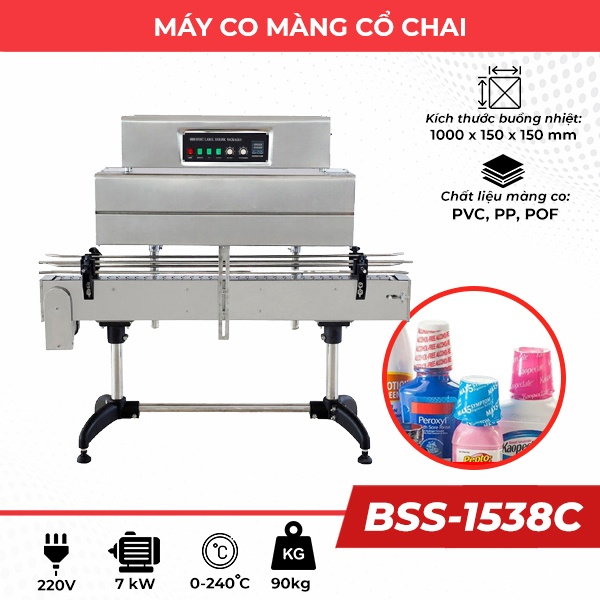 Máy co màng cổ chai BSS-1538C là sản phẩm cực kỳ hữu dụng giúp quá trình đóng gói sản phẩm nhanh chóng hơn từ đó giúp tiết kiệm thời gian và công sức. Nếu như bạn đang tìm mua một thiết bị để phục vụ nhu cầu kinh doanh thì hãy liên hệ M5s để được tư vấn nhé.