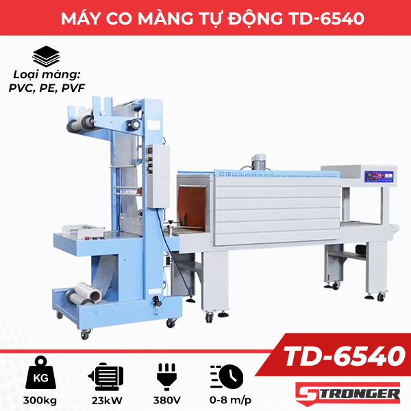 Máy co màng TD-6540 phù hợp cho những cơ sở sản xuất, kinh doanh đóng gói quy mô vừa và lớn. TD-6540 hạn chế tối đa sự tác động của con người giúp loại bỏ những sai sót không đáng có, tạo sự đồng nhất giữa các sản phẩm.