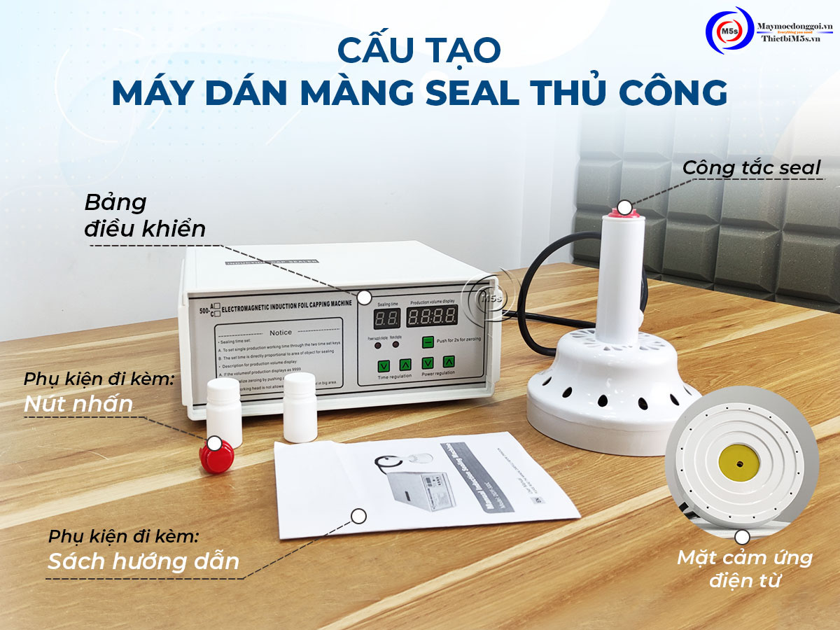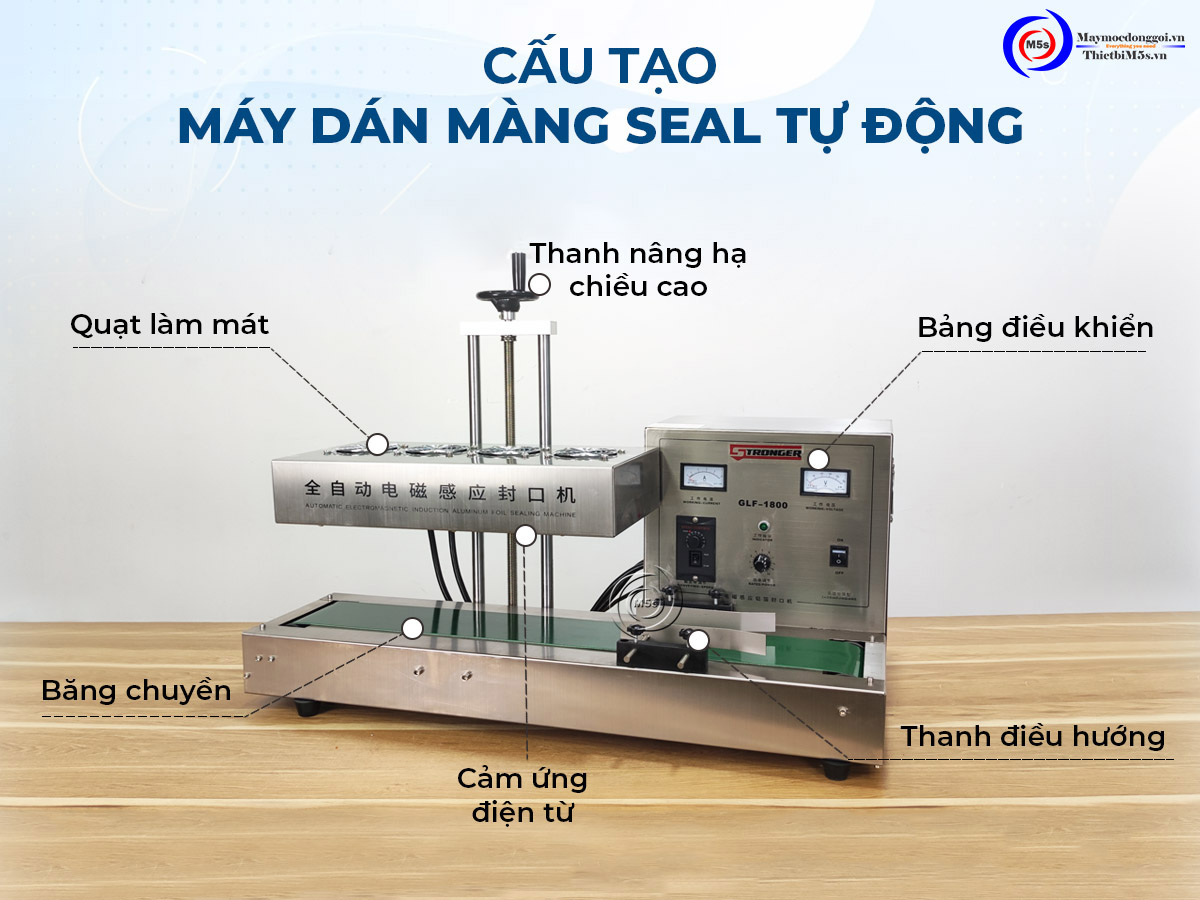 Máy dán màng seal có cấu tạo gồm các bộ phận chính sau: