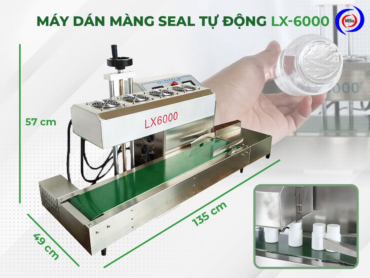 Máy dán màng seal tự động LX-6000 là dòng máy dành cho các cơ sở sản xuất, đóng gói có quy mô hoạt động vừa và lớn. Với thiết kế tân tiến, hiện đại LX-6000 hiện đang được rất nhiều người tin tưởng và lựa chọn trong khâu niêm phong kín chai nhựa của mình. Cùng tìm hiểu chi tiết về mã máy đóng seal này ngay bên dưới đây cùng M5s nhé.