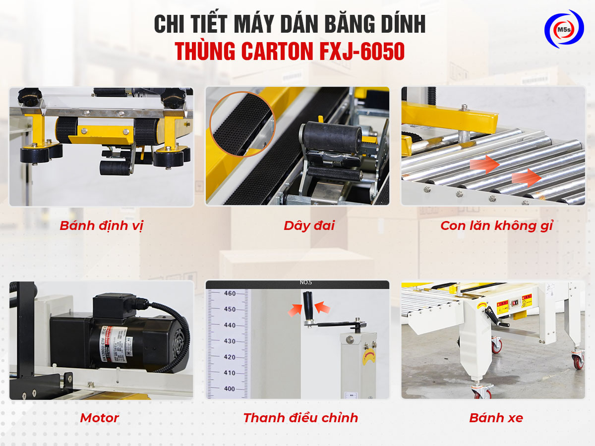 Cùng Thiết bị M5s tìm hiểu chi tiết hơn về thông số kỹ thuật và những thông tin khác của máy dán thùng carton FXJ-6050 để xem thiết bị phù hợp với nhu cầu sử dụng của bạn không nhé.