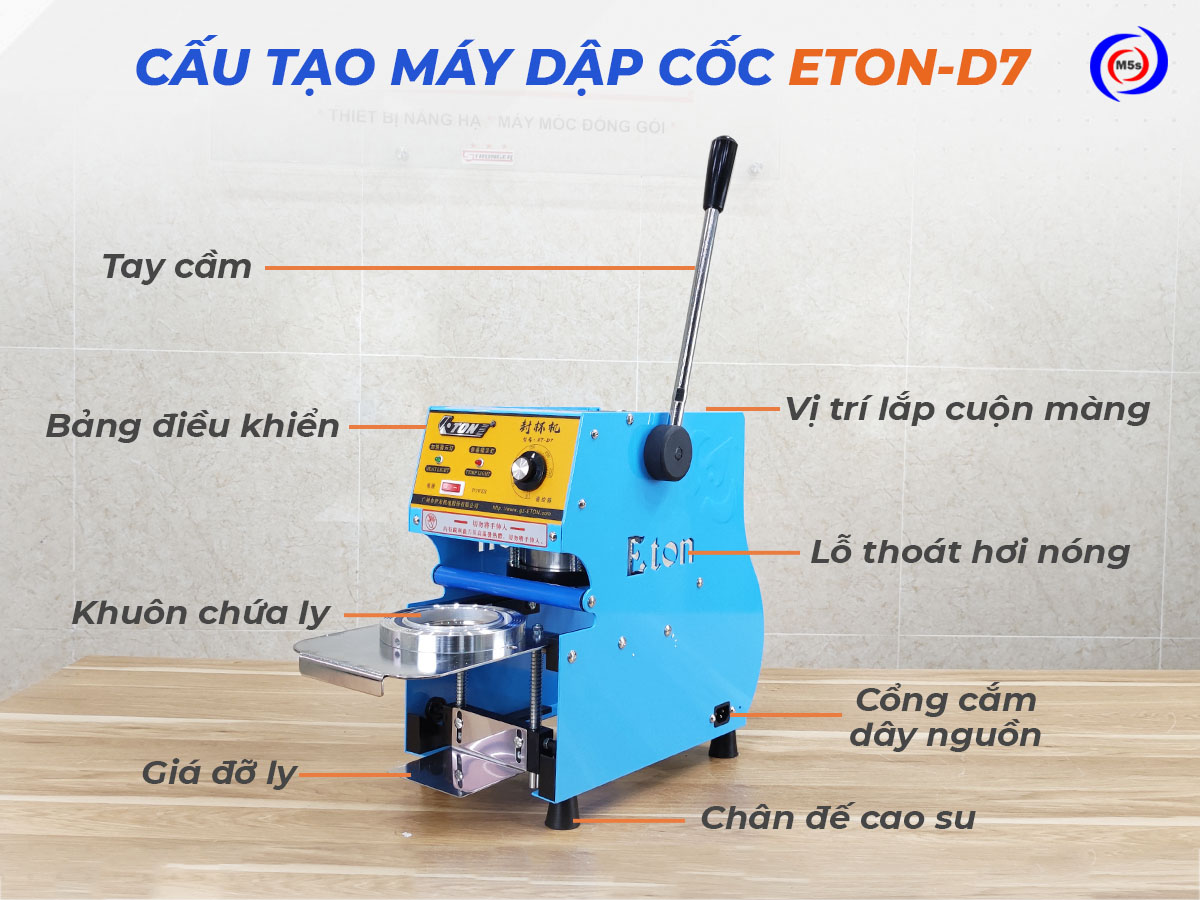 >> Xem ngay video thực tế đập hộp và vận hành máy dập miệng cốc thủ công Eton D7.
