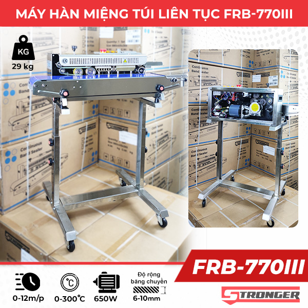 FRB-770III là dòng máy hàn miệng túi công nghiệp liên tục được thiết kế tích hợp thêm bộ phận chân đứng giúp bạn dễ dàng di chuyển trong quá trình làm việc.