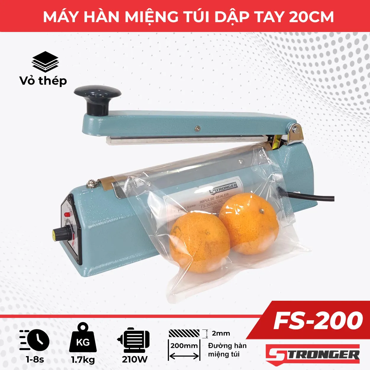 Máy ép túi nhựa bằng tay là các loại máy sử dụng thao tác thủ công bằng tay để hàn miệng túi, niêm phong hàng hóa một cách nhanh chóng. M5s sẽ giới thiệu đến bạn loại máy ép bao bì FS-200 (Vỏ thép) mang nhãn hiệu Stronger.