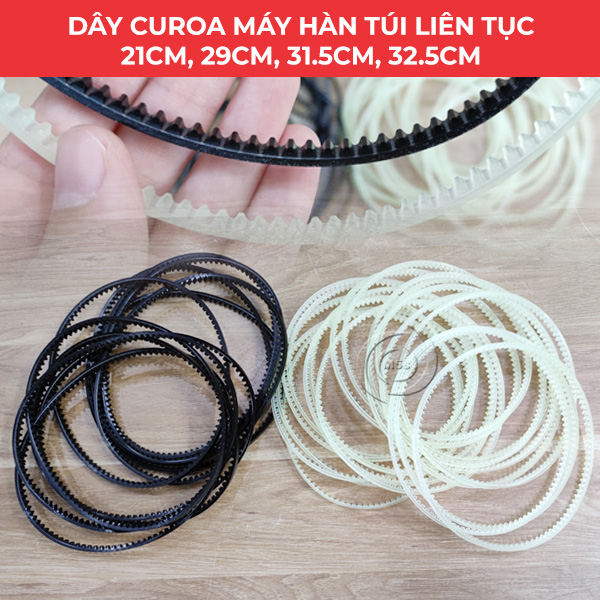 - Dây curoa size 29cm; 31.5cm; 32.5cm dùng để thay thế cho loại máy hàn túi liên tục có in date.