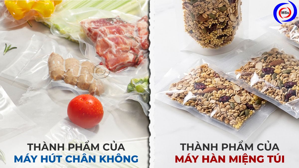 | Chức năng chính | Hút kiệt không khí bên trong và hàn kín miệng túi | Chỉ dùng nhiệt để hàn kín miệng túi (không loại bỏ không khí) |